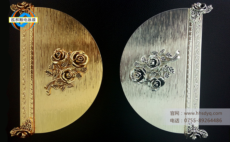 泓和順的金色電泳漆,在電鍍銀底的鐵材上,在電泳金色的效果如下: